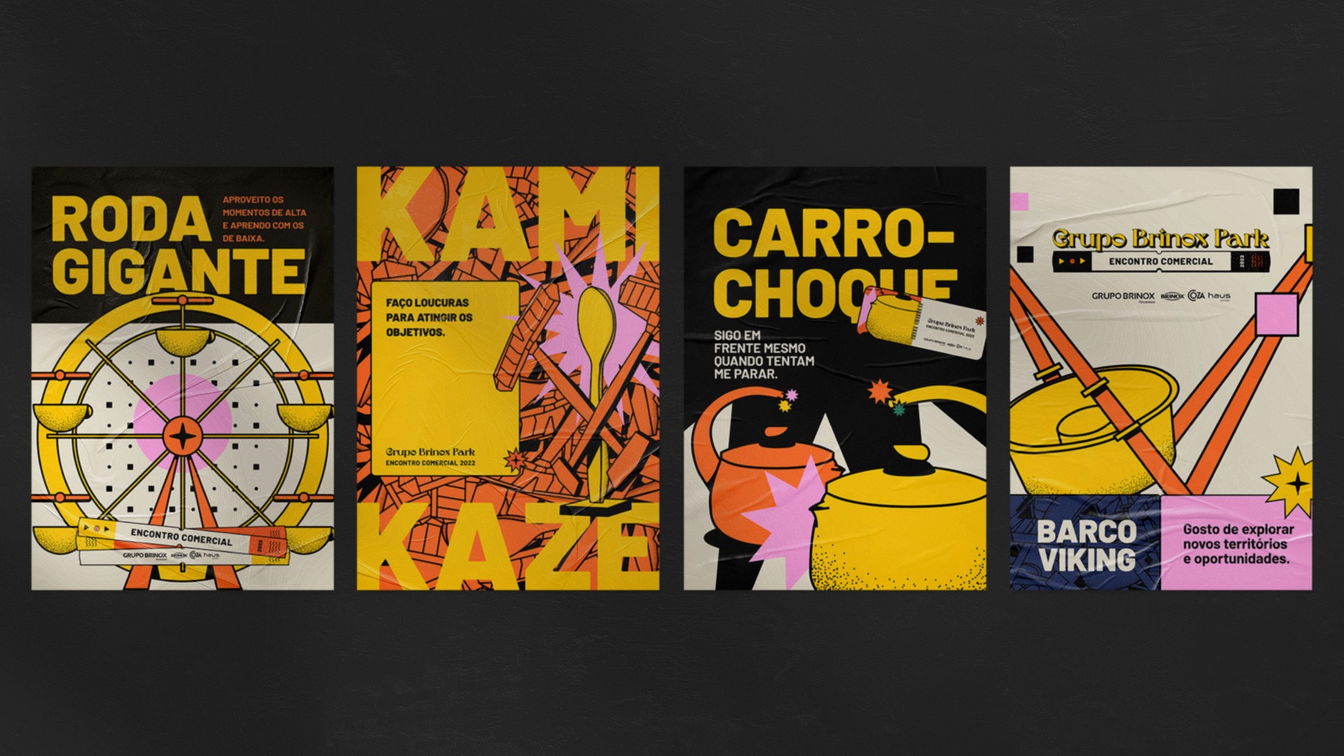 Introducing Grupo Brinox Park: Where we blended brand style with immersive experiences. Our aim? Creating a fun brand look that reflected the lively feel of a theme park. Using dynamic text, engaging visuals, and playful drawings, we captured what made Grupo Brinox special. At our event inspired by theme parks, we shared our goals, fresh marketing ideas, and exciting new products from across the Grupo Brinox lineup. Like the thrills of a theme park ride, our fun challenges showcased the adventurous side of Grupo Brinox. Joining us, participants celebrated creativity and teamwork as we embarked on an exciting journey ahead.